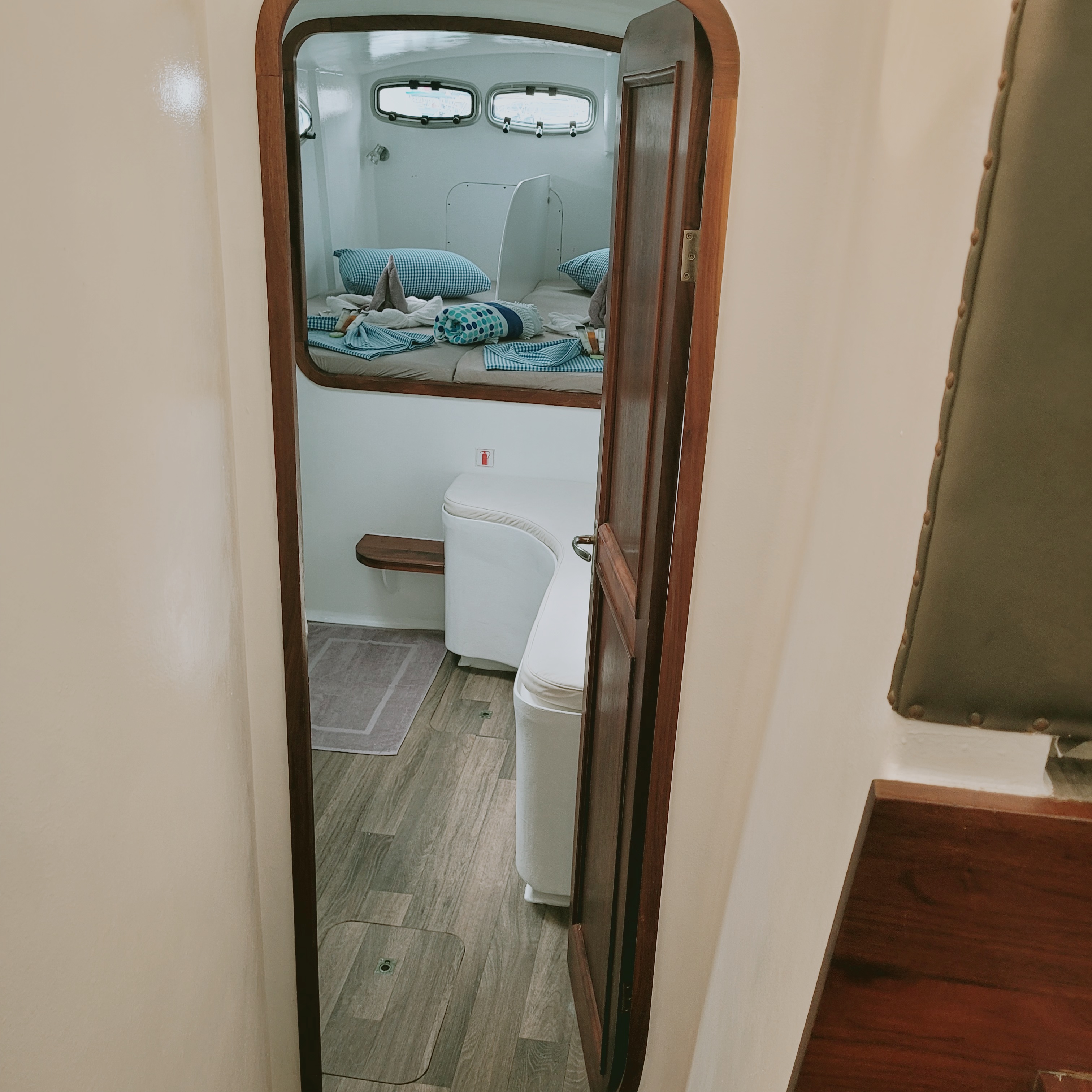Accommodating up to 10 guests in 4 double cabins, 2 forward skipper cabins, and an extra convertible double bed in the saloon, the DH550 offers generous space for everyone on board. She features two helm stations for easy navigation and was upgraded in 2025 with an additional outside helm station, where up to five people can enjoy the stunning views while sailing.