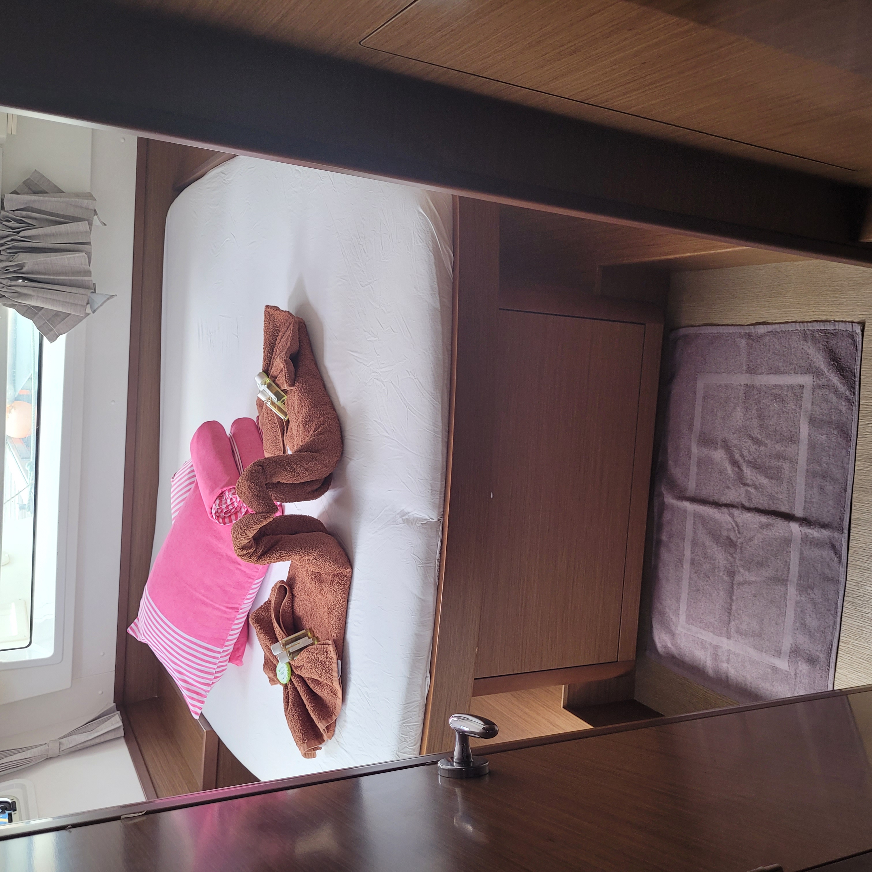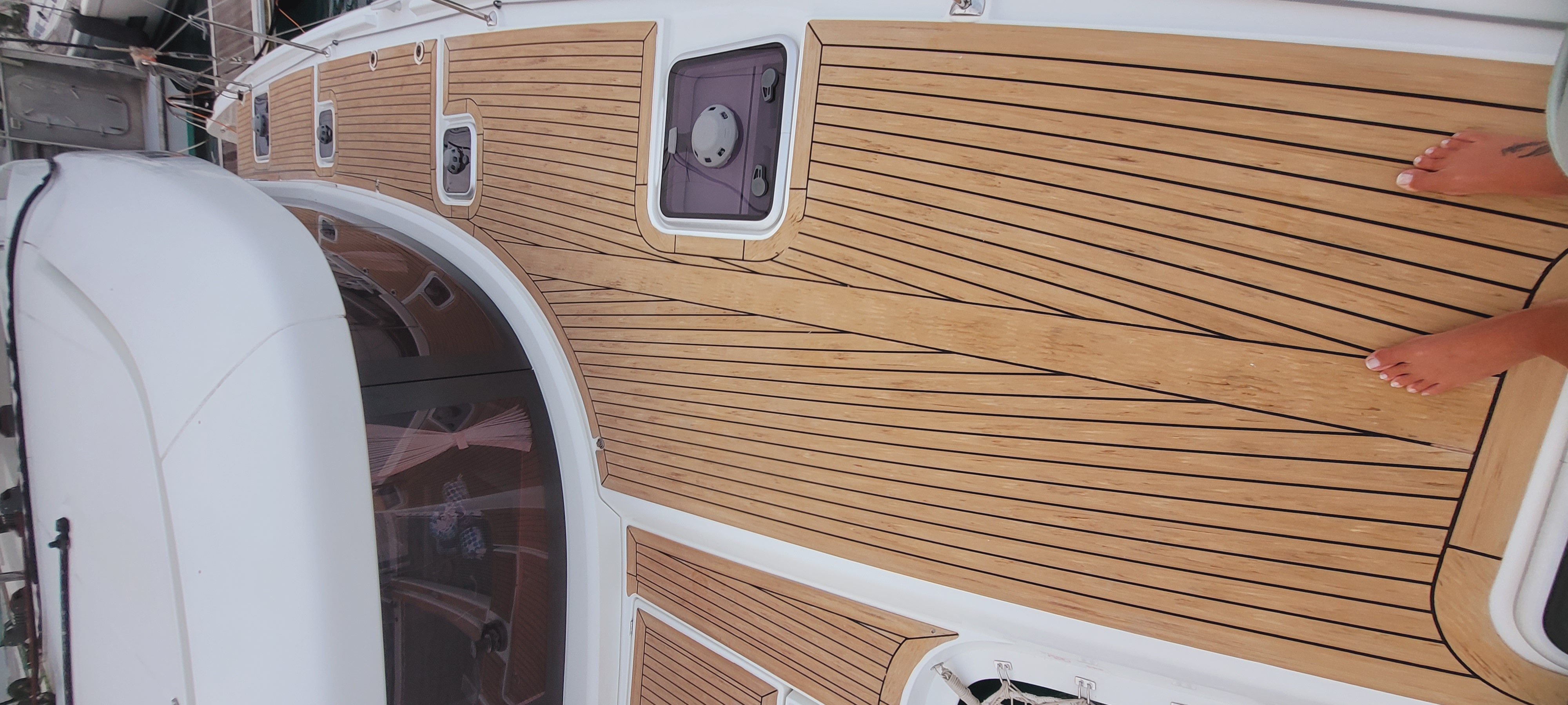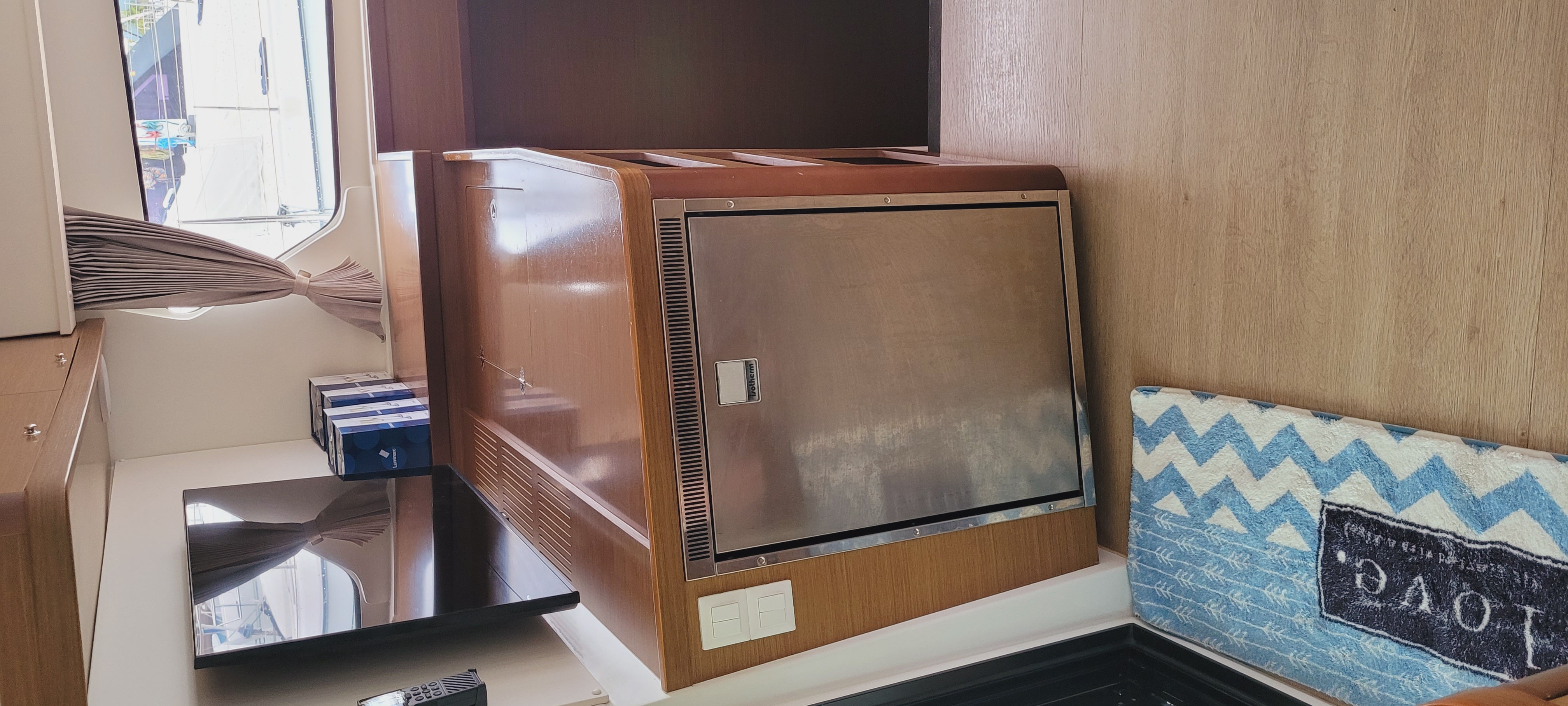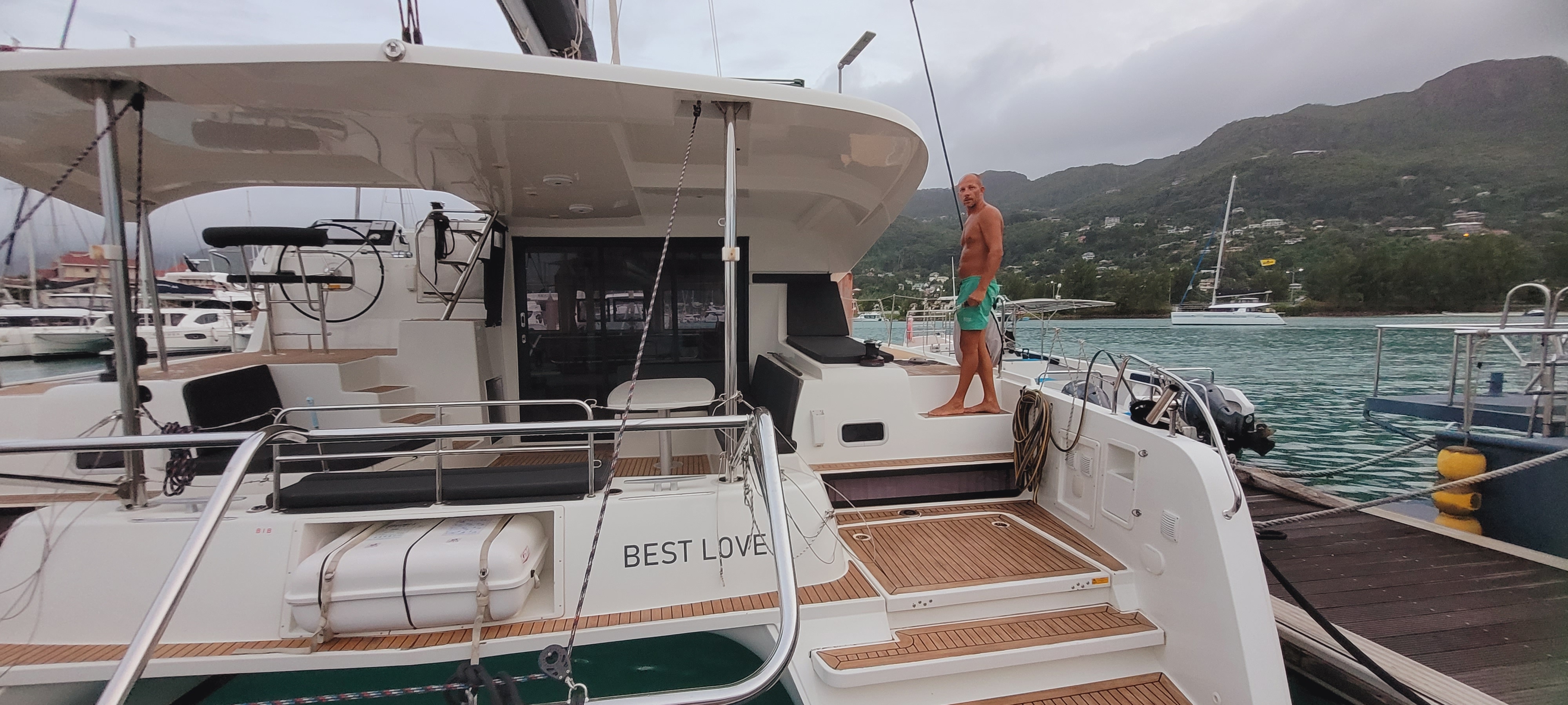 Accommodating up to 10 guests in 4 double cabins, 2 forward skipper cabins, and an extra convertible double bed in the saloon, the DH550 offers generous space for everyone on board. She features two helm stations for easy navigation and was upgraded in 2025 with an additional outside helm station, where up to five people can enjoy the stunning views while sailing.